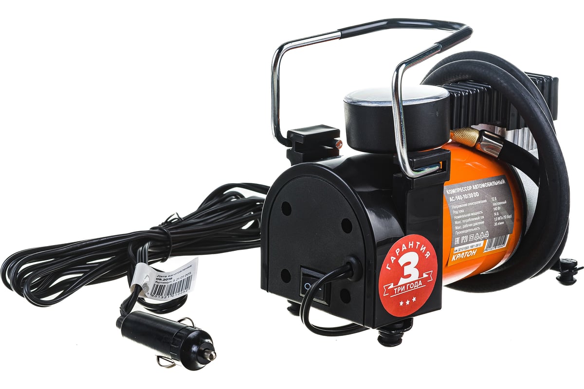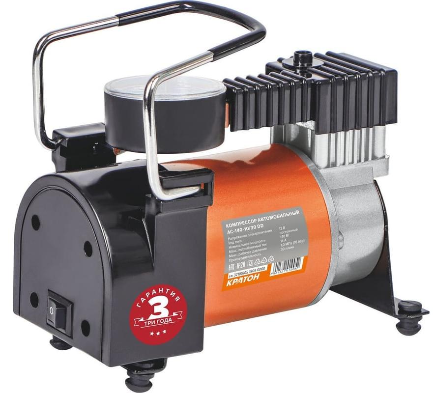 Автомобильный компрессор КРАТОН AC14010/30DD 3 21 01 005 - мобильное устройство для подачи и сжатия воздуха. Используется в автомастерских, личных гаражах, при проведении строительных и ремонтных работ. Отличается небольшими габаритами и весом, что обеспечивает удобство хранения и транспортировки. Отлично подходит для любого автолюбителя. Модель работает от прикуривателя, что позволяет использовать ее в любом удобном месте. Агрегат оснащается двушкальным высокочастотным аналоговым манометром для контроля рабочего давления. Для легкой переноске предусмотрена удобная ручка с нескользящей накладкой.