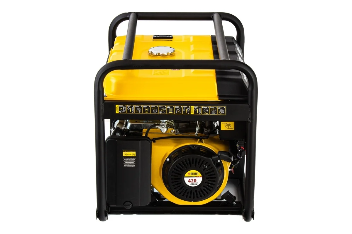 Бензиновый генератор Denzel с топливным баком объемом 25 л и электростартером поддерживает напряжение в сети 230 В и 400 В и используется в качестве резервного источника питания для снабжения однофазным или трехфазным током различного оборудования суммарной мощностью до 6,6 кВт. Подходит для использования как в загородном доме, так и на строительной площадке. Благодаря увеличенному топливному баку генератор способен до 10 часов работать без дозаправки.