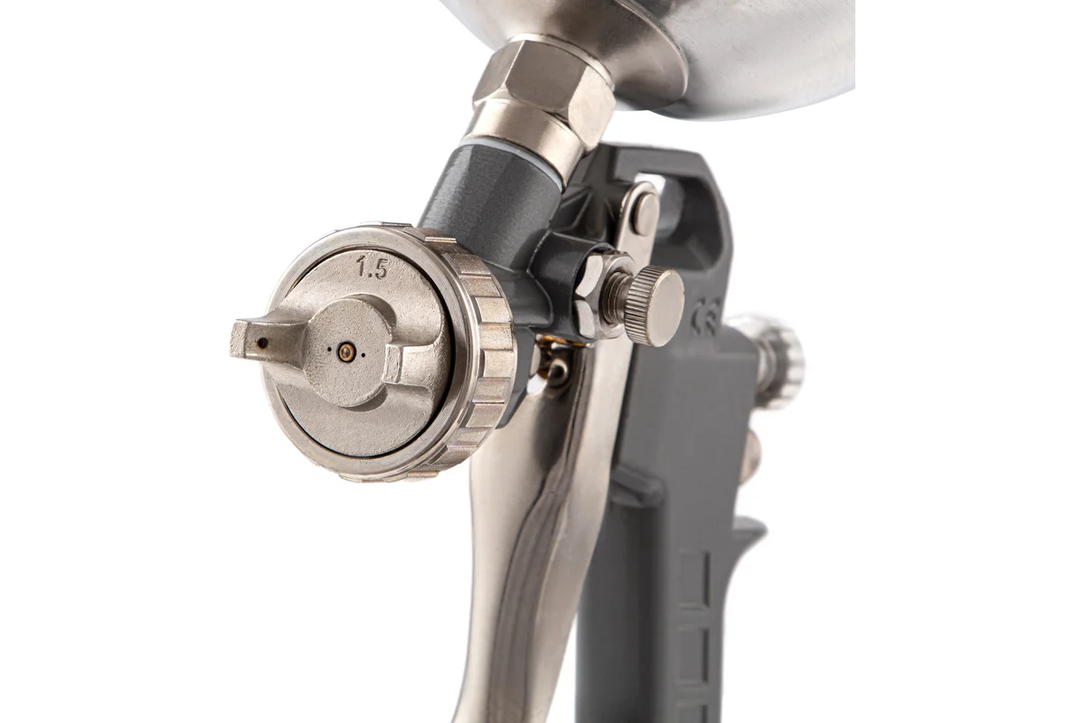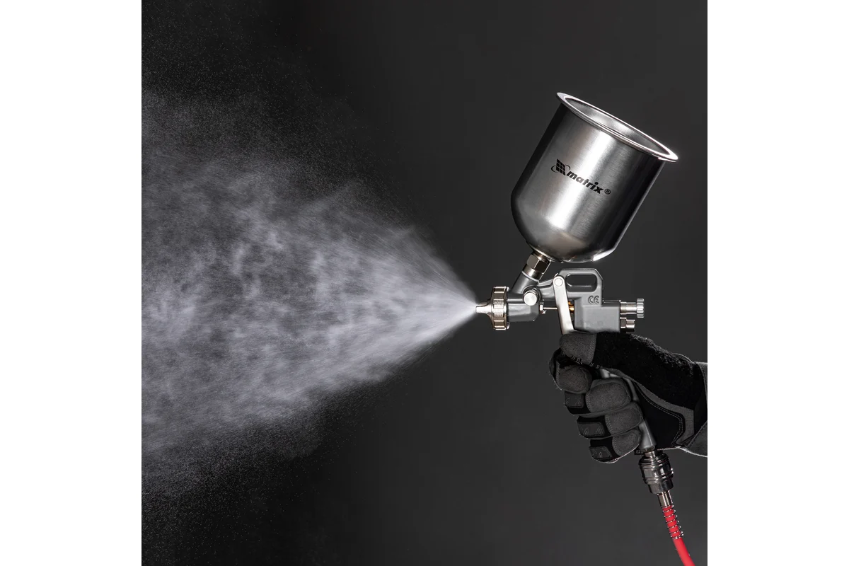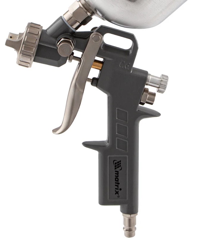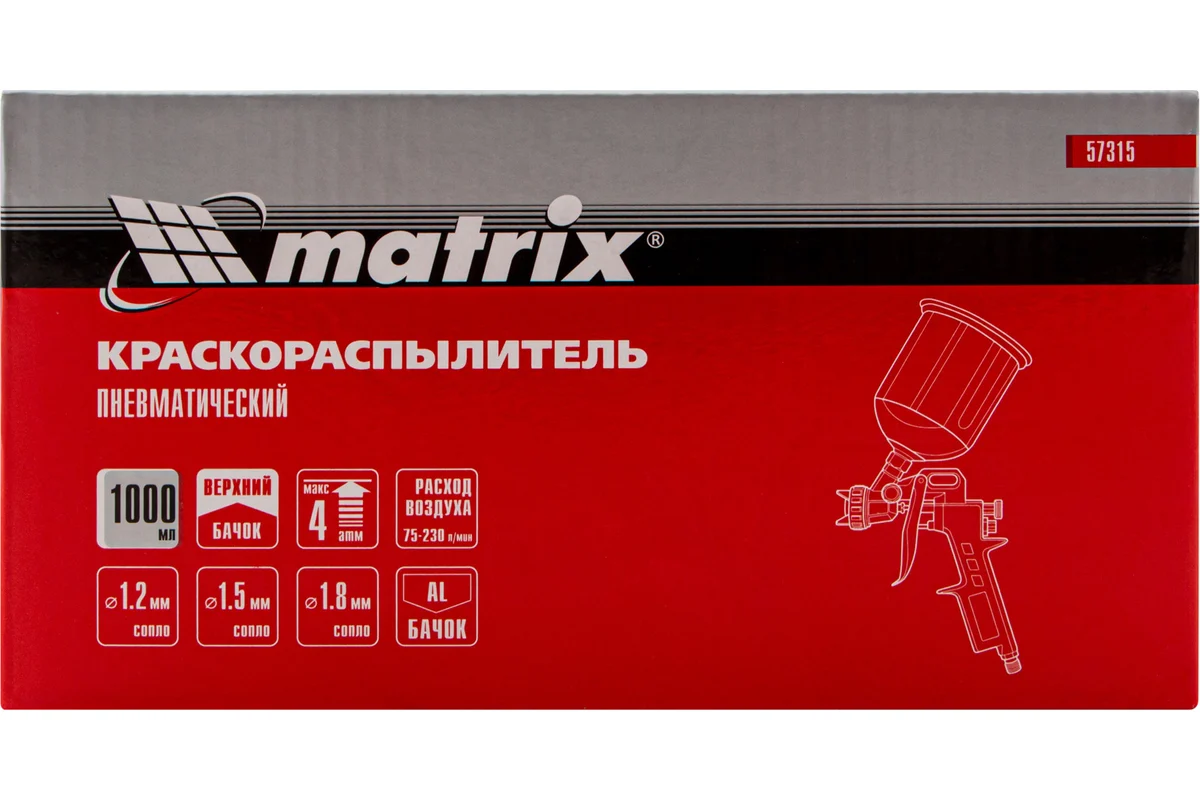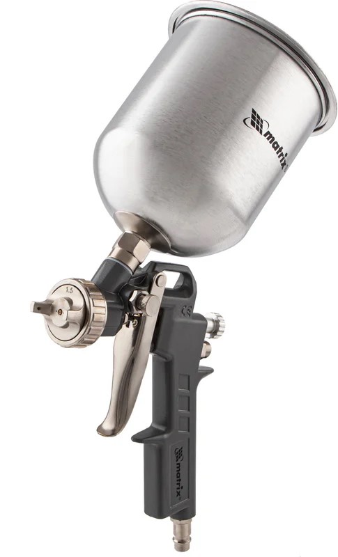 Пневматический краскораспылитель с верхним бачком MATRIX 57315 позволяет наносить на поверхность защитные, декоративные и изоляционные покрытия. Он имеет верхнее расположение бачка и вмещает в себя до 1 литра краски для долгой работы без дозаправки. Конструкция краскопульта выполнена из металла, благодаря чему устойчива к механическим повреждениям в случае падения. В комплекте прилагаются сопла диаметром 1.2, 1.5 и 1.8 мм, поэтому инструмент готов к использованию.