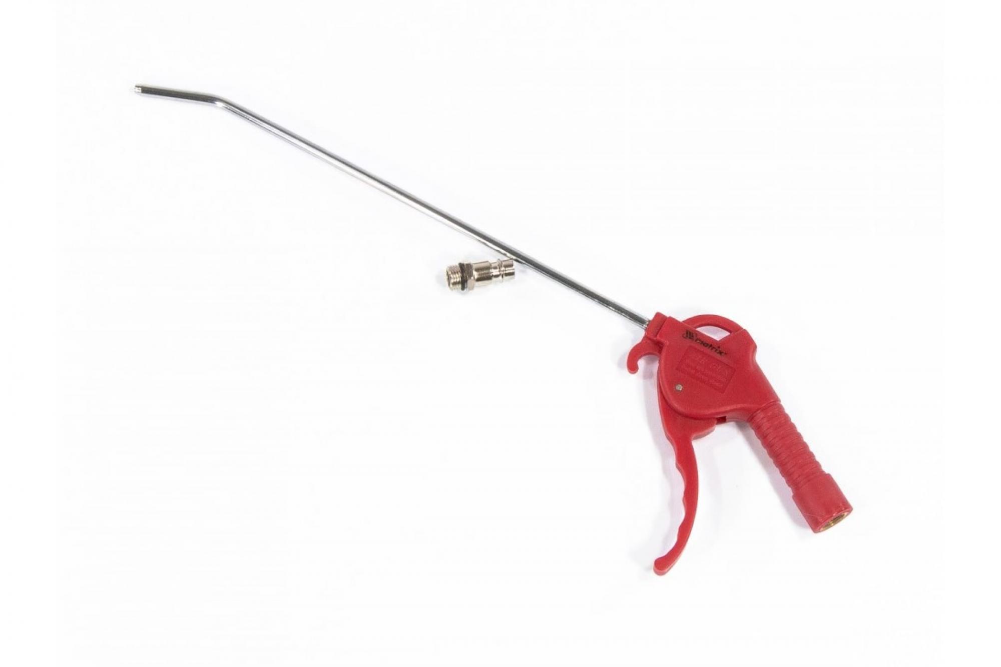 Пневматический продувочный пистолет с удлиненным изогнутым соплом MATRIX 270 мм 57334 используется для продувки малых отверстий и больших поверхностей.
