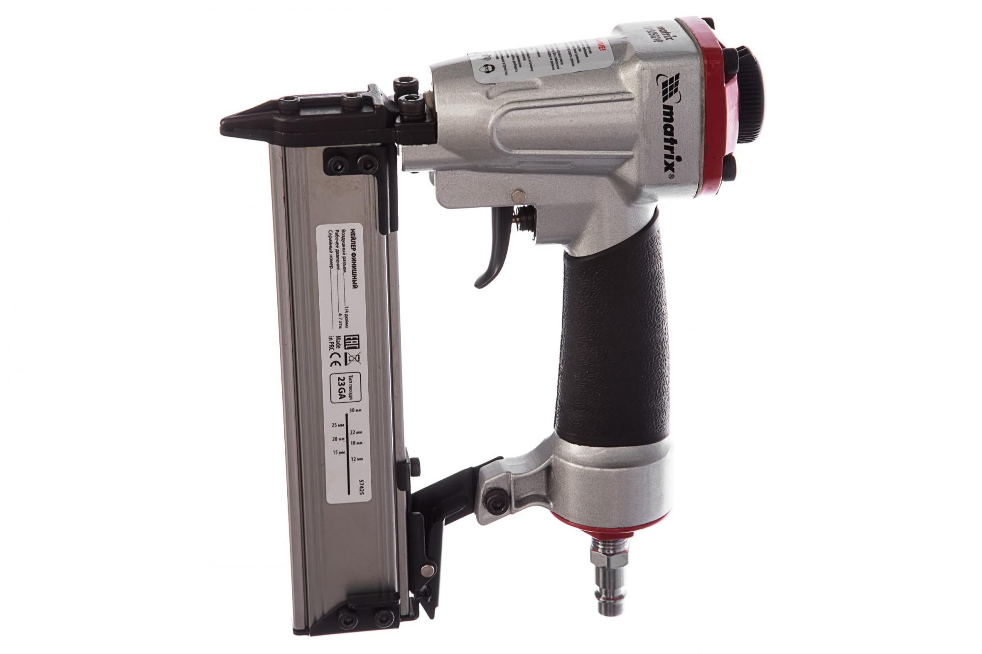 Пневматический нейлер Matrix предназначен для забивания шпилек 23GA. Он используется при проведении финишной отделки, а также при сборке мебели и упаковке. Нейлер имеет низкий расход воздуха 0,7 л/мин, поэтому работает с любым типом компрессоров.