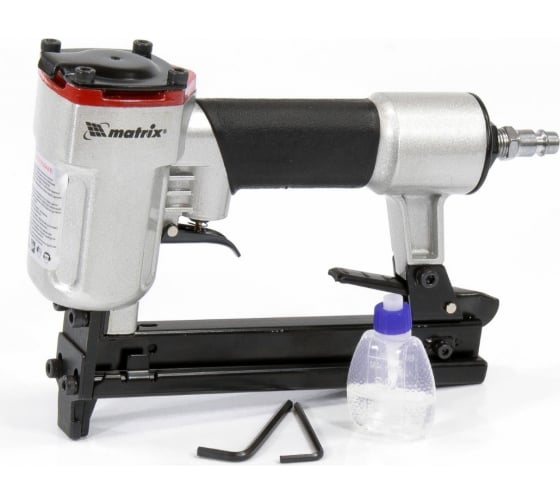- Пневматический степлер используется в производственной сфере деятельности, так как обладает высоким уровнем эффективности в работе. Степлер способен быстро и легко забивать скобы в деревянные поверхности, крепя к ним различные материалы, такие как: гипсокартон, фанеру, ДВП, а также кожу, ткань и пр. Степлер имеет магазин на 160 скоб размерами 10 - 22 мм.