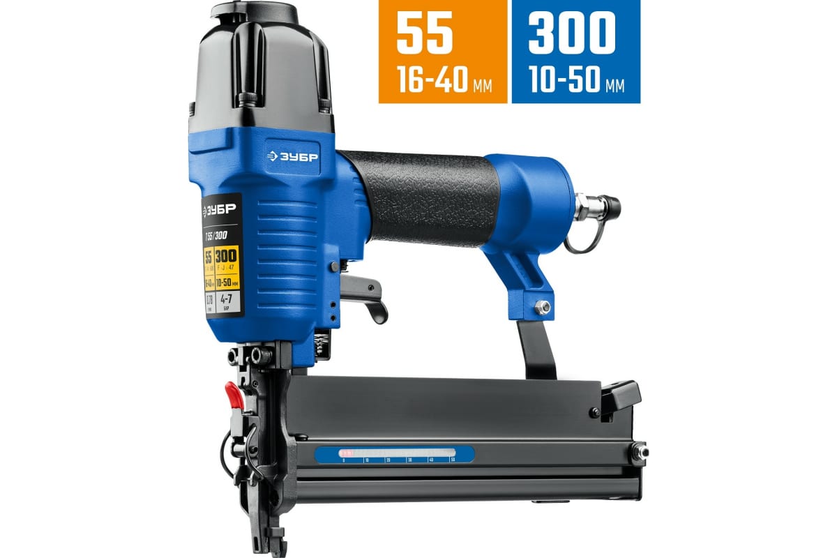 Нейлер-степлер пневматический ЗУБР Т55/300 2в1 гвозди скобы 55, 16-40мм