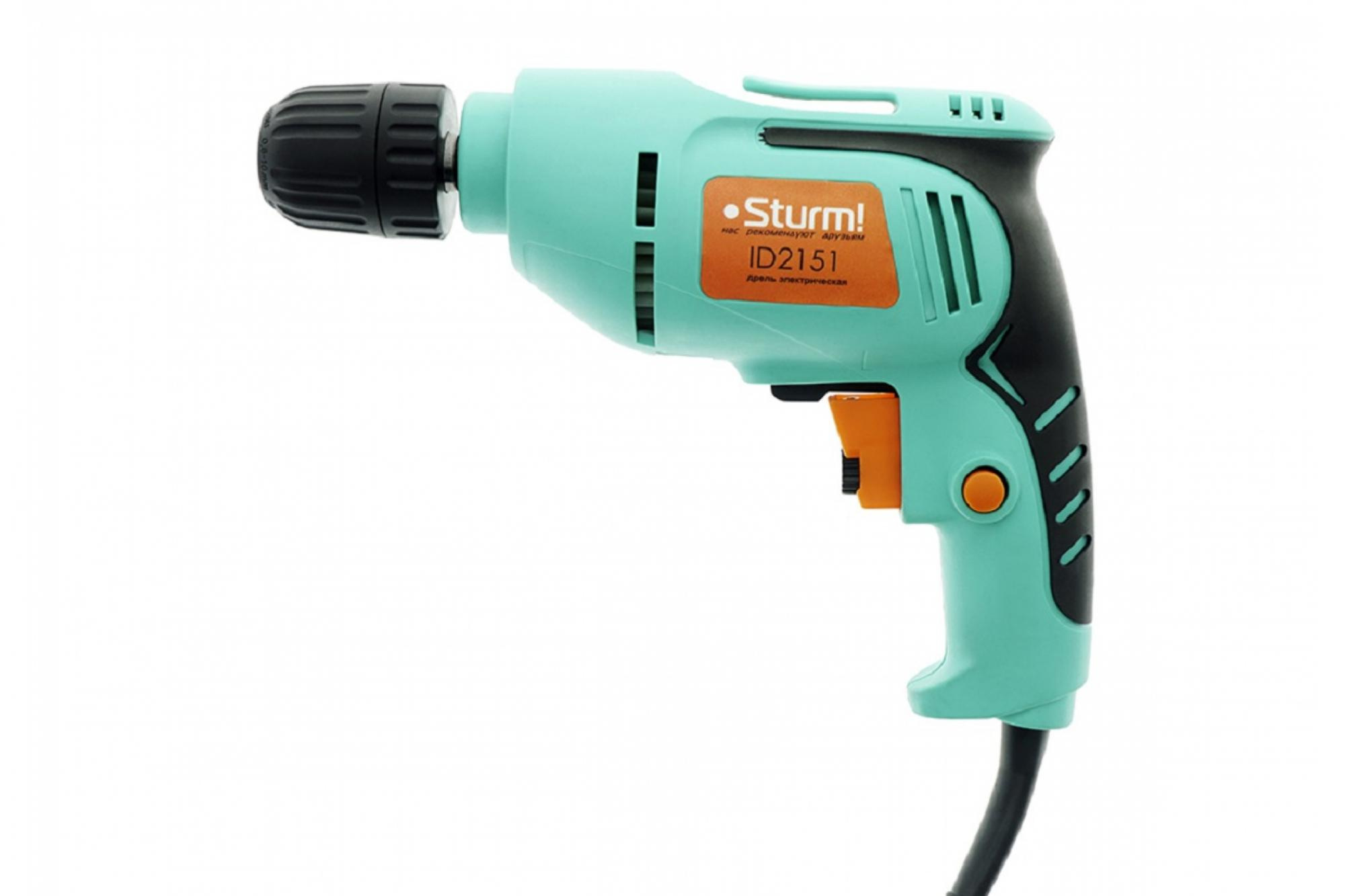Электрическая дрель Sturm ID2151 оснащена быстрозажимным сверлильным патроном, благодаря чему можно легко и быстро заменить рабочие насадки. Нужная скорость вращения устанавливается с помощью регулировочного колесика, расположенного на курке включателя. Предусмотрена кнопка фиксации выключателя для продолжительной и неутомительной работы оператора.