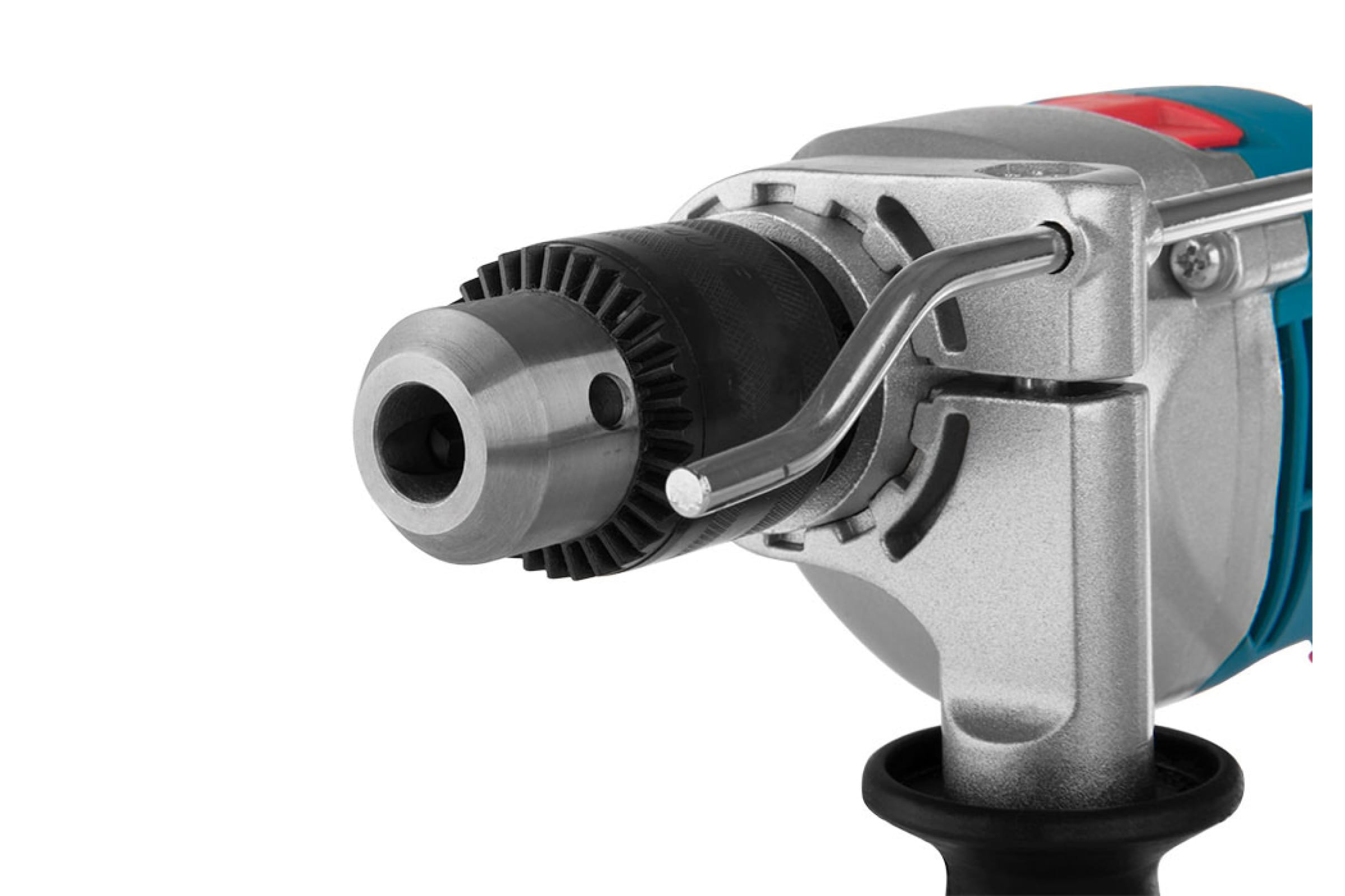 Дрель обладает двигателем мощностью 1000 Вт. Он имеет частоту вращения 0-2700 оборотов в минуту и частоту ударов 45900 в минуту. Имеет 2 режима работы: сверление и ударное сверление в различных материалах (камне, дереве, металле, керамике и пластике).