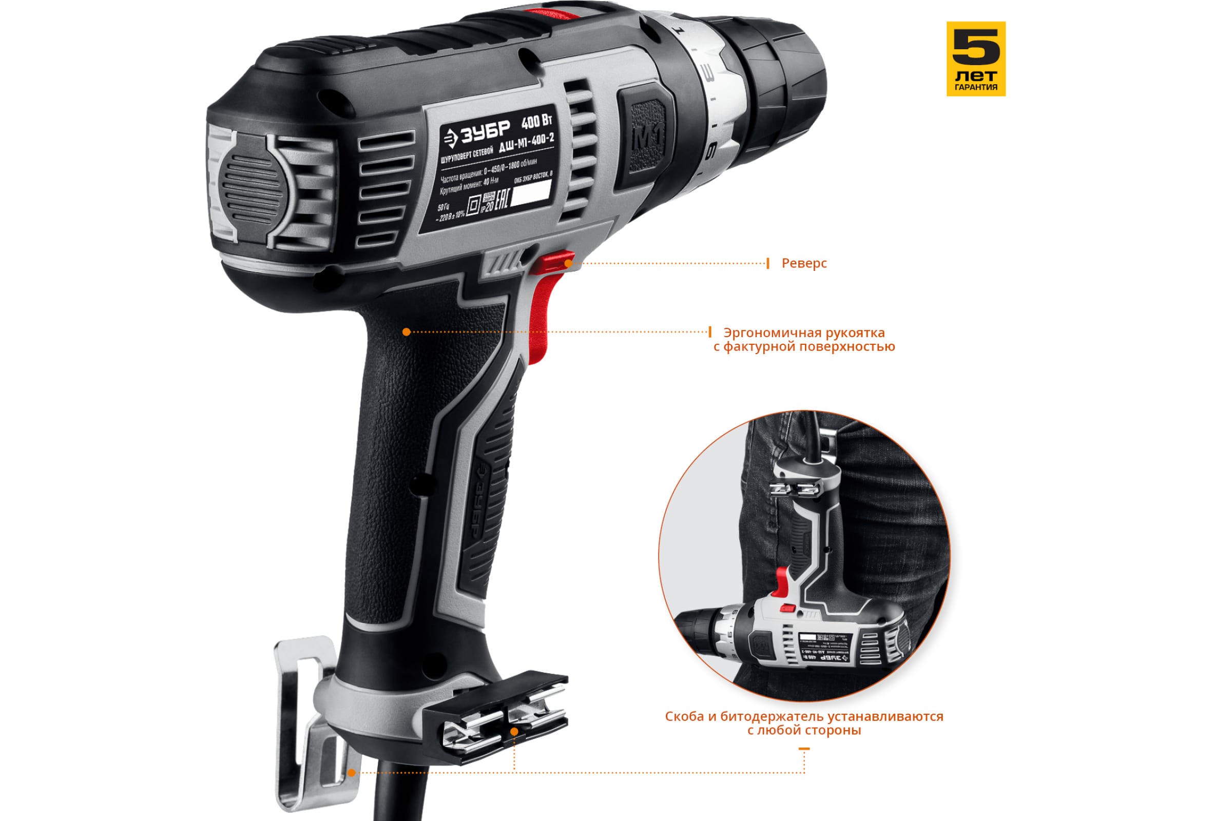 - Скоба для крепления инструмента на поясе.