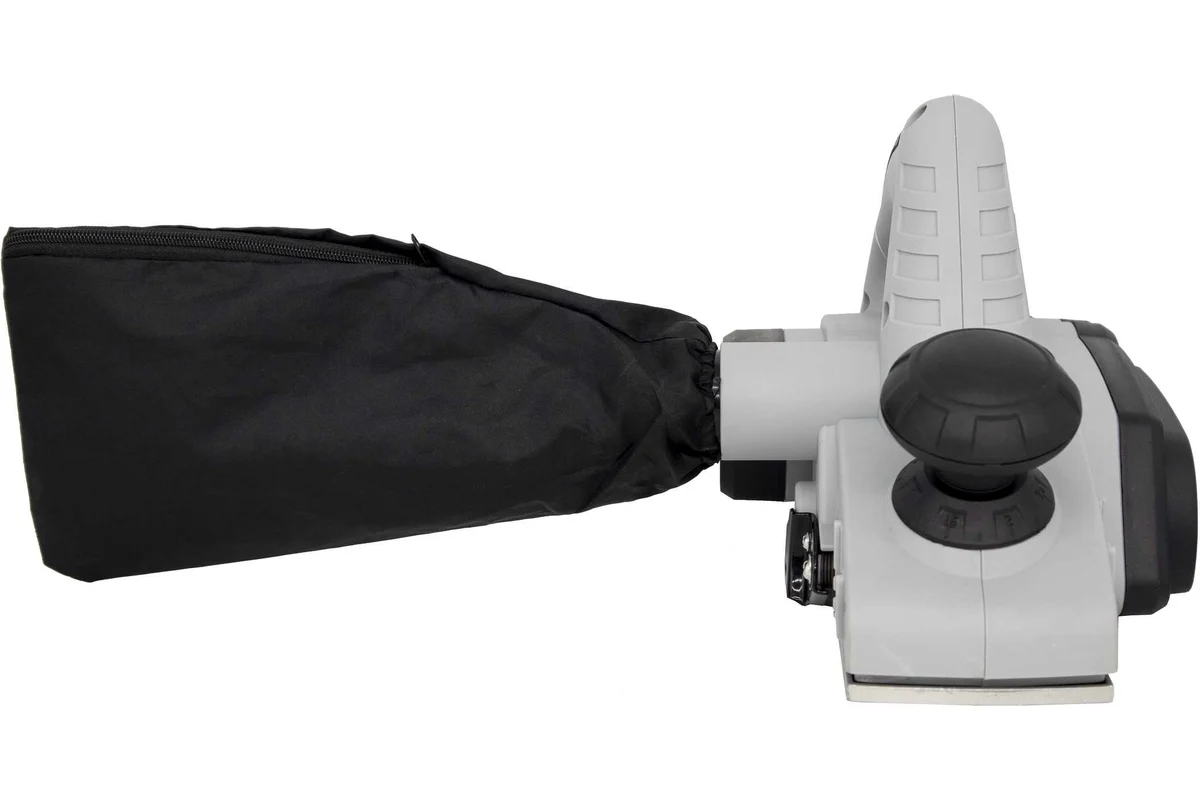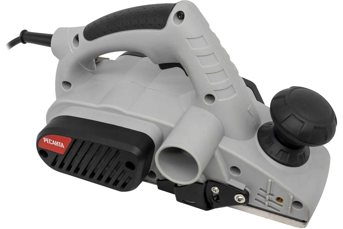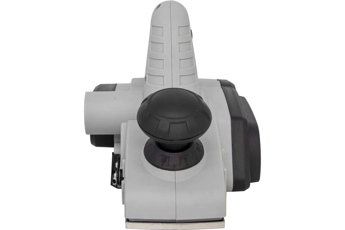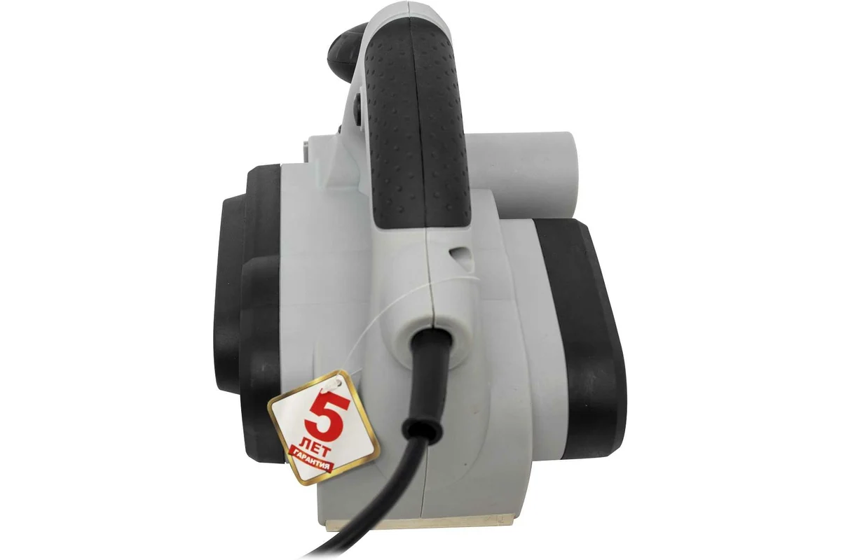 Инструмент работает от сети, оснащен надежным электродвигателем мощностью 1100 Вт и числом оборотов 16000 в мин. Для обеспечения воздушного охлаждения мотора в корпусе предусмотрено наличие специальных вентиляционных отверстий. Электрорубанок легко справляется с любыми породами дерева и разными видами пиломатериала. Ширина строгания – 82 мм. В зависимости от стоящих задач глубину строгания можно менять в диапазоне от 0 до 3 мм. Для ее изменения достаточно повернуть шарообразную рукоятку, расположенную в передней части корпуса. Вокруг ручки имеется круговая шкала, которая позволяет точно выставить нужный параметр. Электрический рубанок имеет удобную эргономичную форму с широкой рукояткой и дополнительной ручкой. Кнопка включения расположена в удобном для нажатия месте. Устройство имеет блокировку на случай непреднамеренного запуска, а также фиксацию выключателя для удобства длительной работы с инструментом. Во время строгания стружка отводится в сторону, что обеспечивает чистоту и аккуратность выполнения работ. Ножи с двусторонней заточкой увеличивают длительность использования инструмента без необходимости делать перерыв на затачивание лезвий.