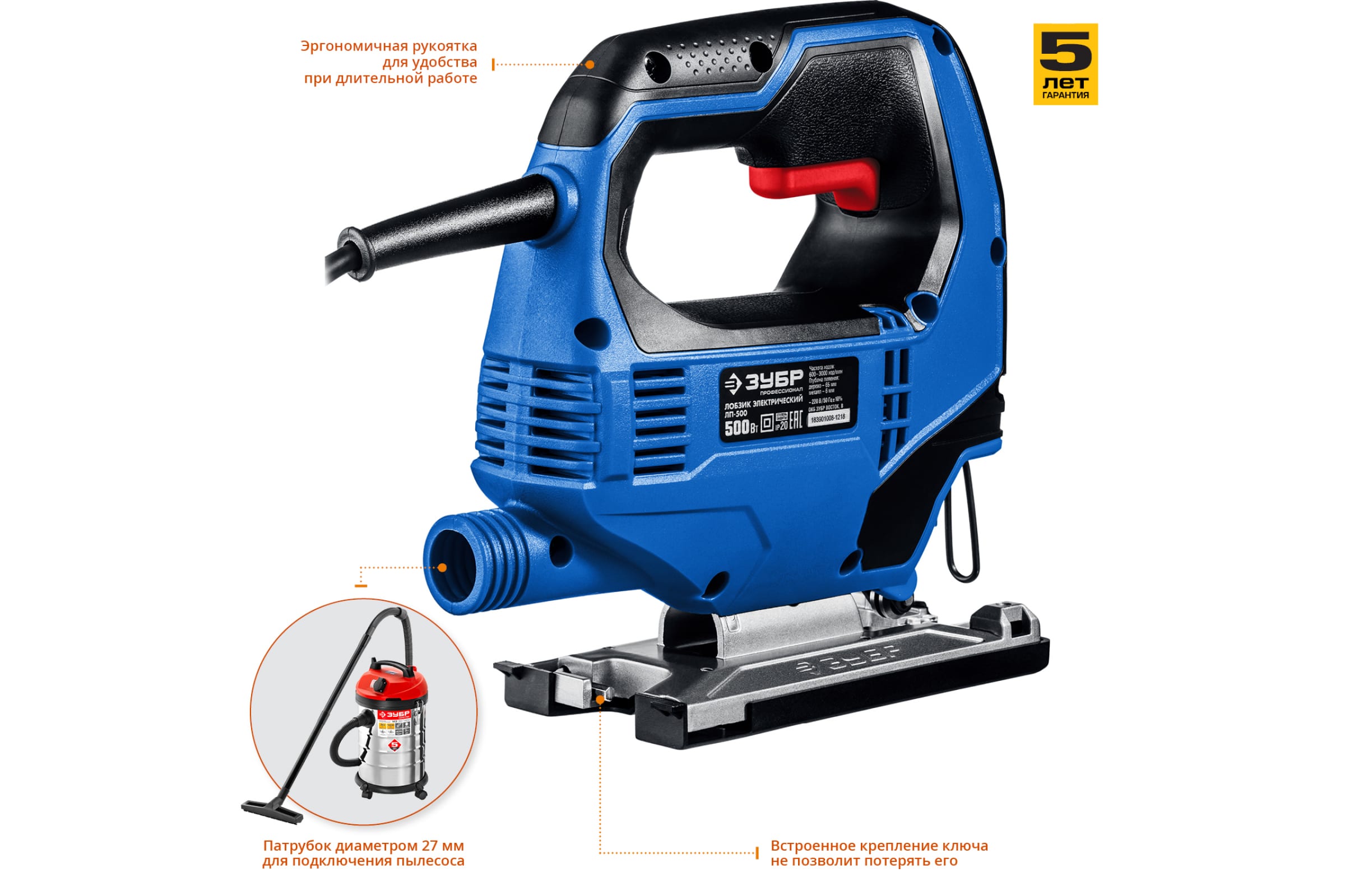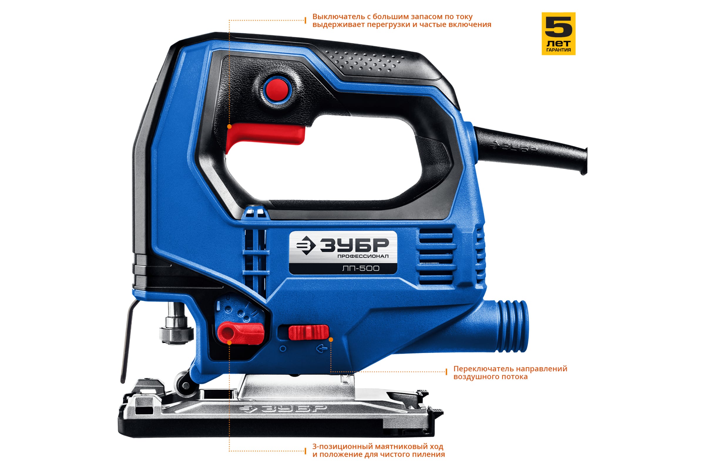 Электрический лобзик Зубр Профессионал ЛП-500 предназначен для пиления различных материалов.
