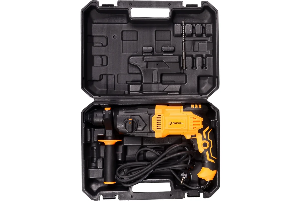 Электрический перфоратор Вихрь П-1000К с двигателем мощностью 1000 Вт предназначен для широкого спектра бытовых ремонтных и строительных работ. Патрон с креплением SDS-PLUS создан для быстрой замены оснастки диаметром до 10 мм. В зависимости от поставленных задач можно выбрать один из трех режимов: сверление, сверление с ударом или режим удара. Энергия удара 5 Дж и частота до 4900 уд/мин позволяют применять инструмент, в том числе, на бетонных и каменных поверхностях.