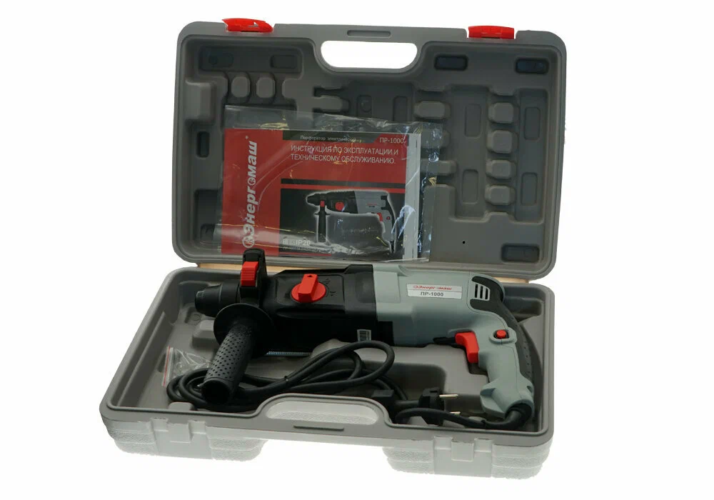 ПР-2610 Перфоратор Энергомаш, 1000Вт, 26мм, 3.2Дж, 0-5300уд/мин, 0-1150об/мин, 3 режима, кейс