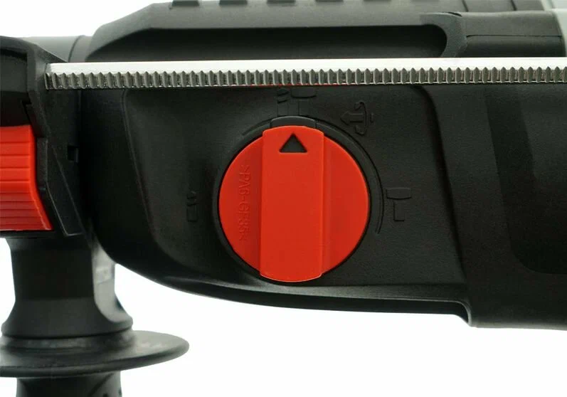 Перфоратор — компактный, маневренный электроинструмент для сверления отверстий в таких материалах как: дерево, сталь, кирпич, бетон или снятия старой керамики, штукатурки. В целях выполнения конкретной задачи следует выбрать один из трех режимов: «сверление», «сверление с ударом», «удар». Данная модель отлична подвижным и надежным переключателем реверса и широкой пусковой кнопкой сподручной для верного регулирования скорости вращения патрона. Именно SDS+ патрон предоставляет быстрое и надежное крепление необходимой оснастки. В свою очередь режим поворота оснастки придает удобства при использовании электроинструмента. При выполнении отверстий заданной глубины полезно применить ограничитель глубины.