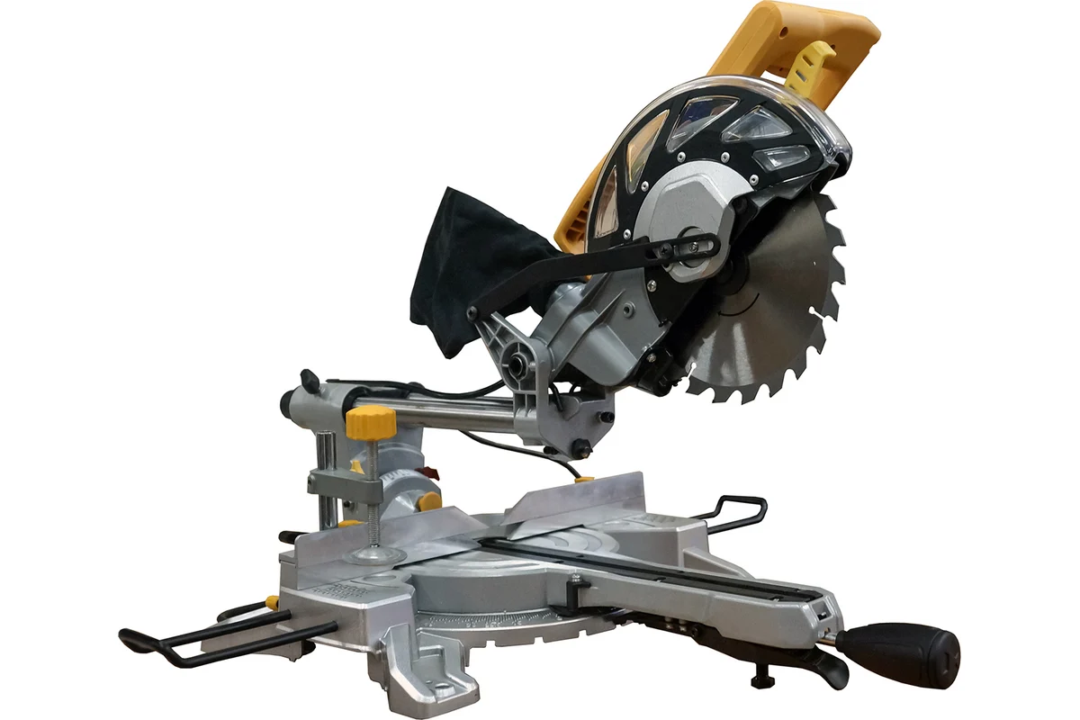 Торцовочная пила используется для работ по дереву и аналогичным материалам. Лазерная направляющая обеспечивает более точный распил. Возможность подключения пылесоса помогает поддерживать чистоту на рабочем месте. Пильный диск защищен кожухом, что обеспечивает безопасность в процессе работы.