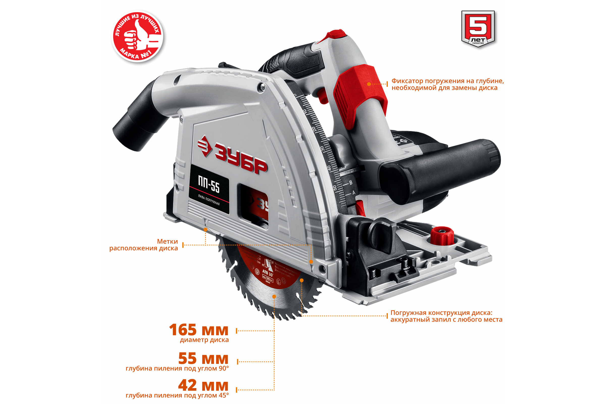 Погружная пила Зубр ПП-55 используется для пиления древесины под различными углами, а также под наклоном. Обеспечивает высокую точность распила.