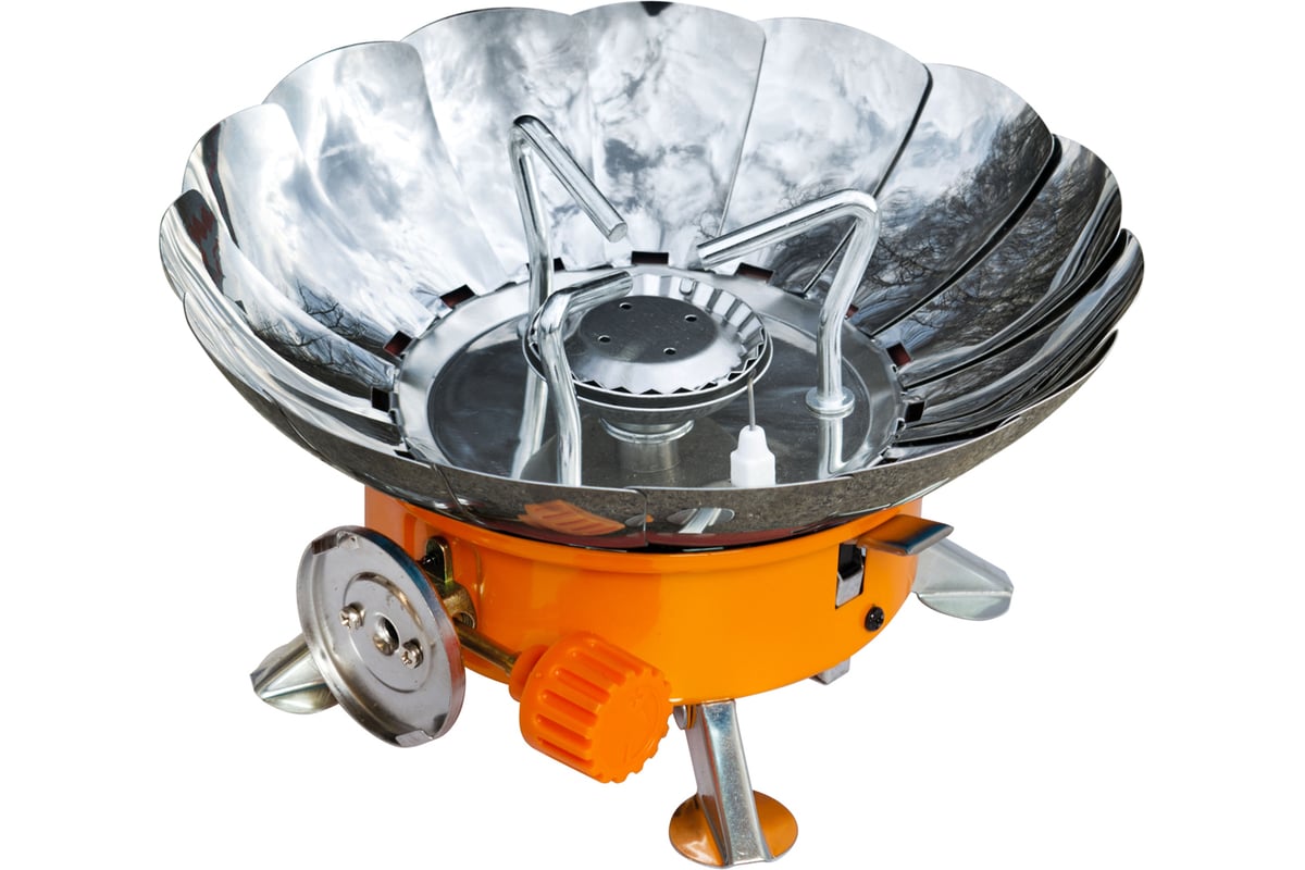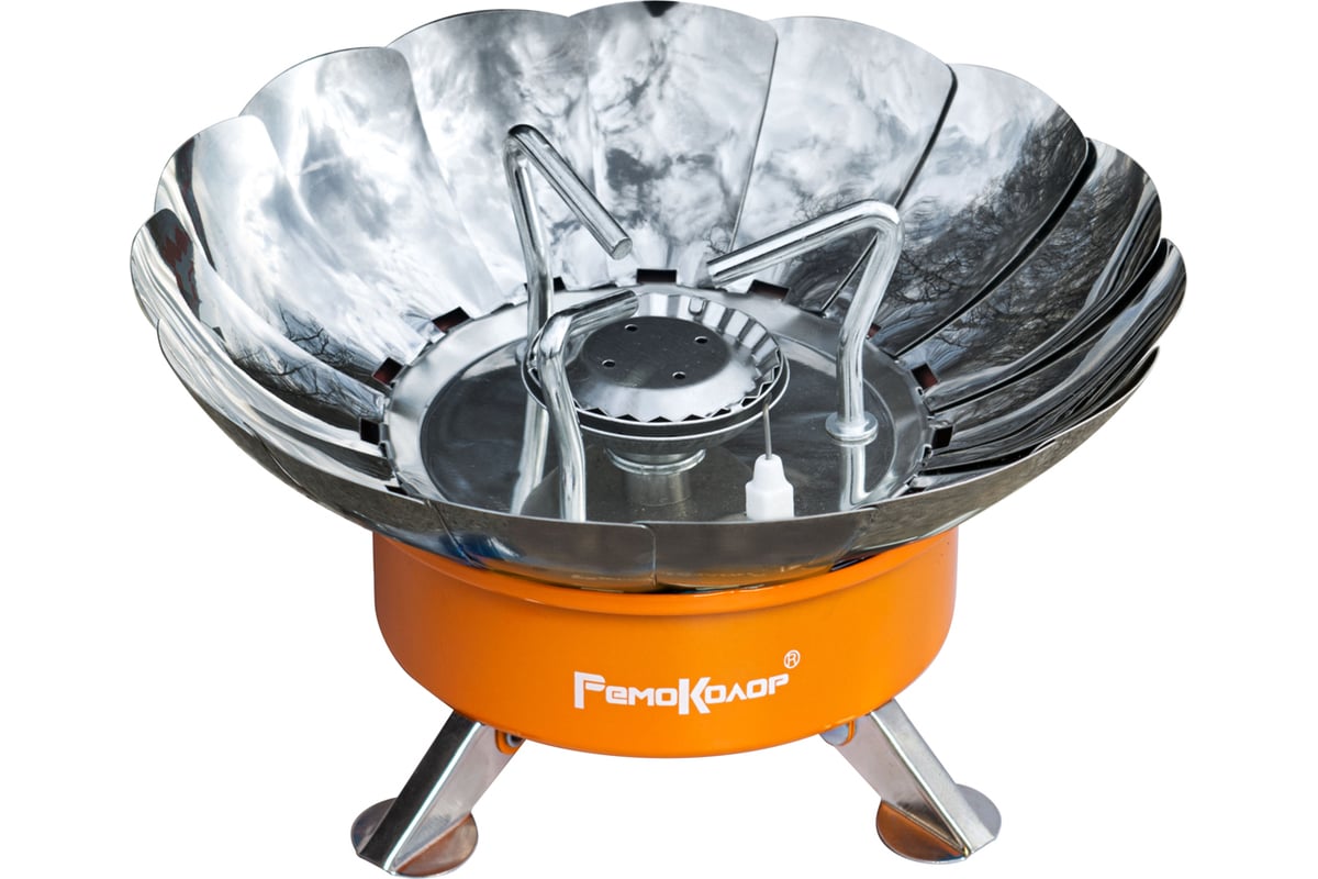 Мини-плита туристическая газовая к цанговому баллону, с пьезоподжигом, с ветрозащитой, круглая РемоК