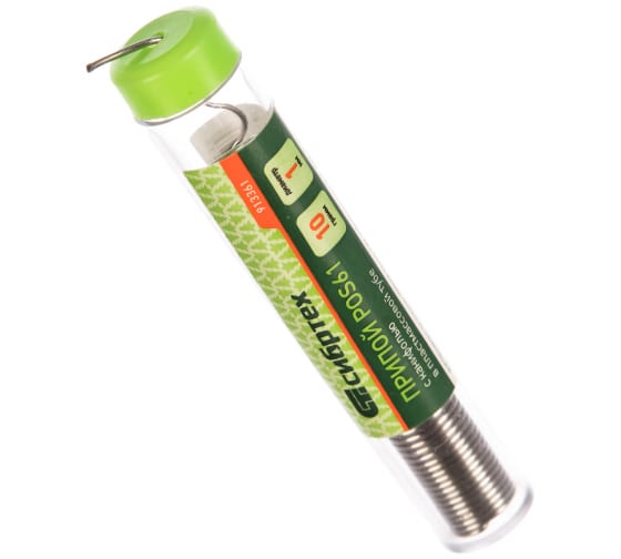 - Припой с канифолью, D 1 мм 10 г, POS61 СИБРТЕХ 913361 используется при пайке проводки, электронных схем.