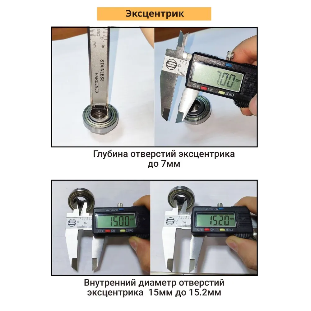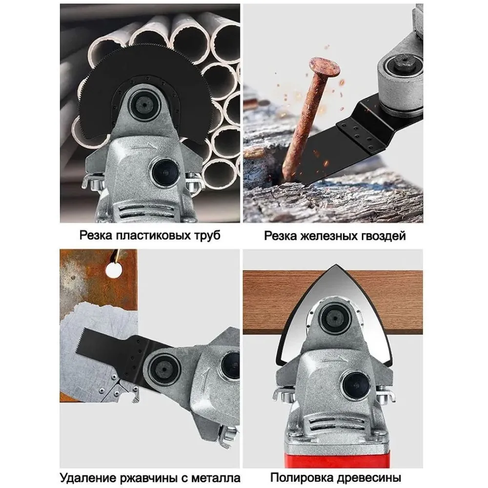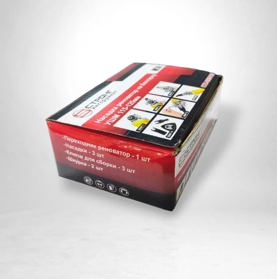 Насадка Реноватор на УШМ. Как правило используется при проведении ремонтных, отделочных, слесарных работах по дому, а так же в автомастерских там где нет возможности подобраться диском, реставрации, изготовлении различных конструкций из любых материалов и т.п. "Насадка реноватор на болгарку" используется в комплекте с УШМ ( болгаркой) под диаметр диска 125 мм с диаметром посадки защитного кожуха 41-42 мм. Размер резьбы шпинделя М14, диаметр отверстий эксцентрика 15мм-15,2мм, глубина отверстий 7мм. С такой насадкой на болгарку без проблем можно подрезать плинтус в углах, и прочие вещи с которыми так часто приходится сталкиваться при работах по дому. В отличии от болгарки скорость реза пилкой будет медленной что позволит избежать большого количества пыли. Несомненным преимуществом данной насадки будет то, что нет надобности иметь дополнительный инструмент. Который используется зачастую нечасто. В комплекте идут 2 образца прямых пилок, а также насадка под наждачную бумагу если есть необходимость зашлифовать поверхность в углах деталей, там где круглым диском не подобраться. Эксцентрик на подшипнике обеспечит минимальный износ трущихся поверхностей в отличии от других производителей.