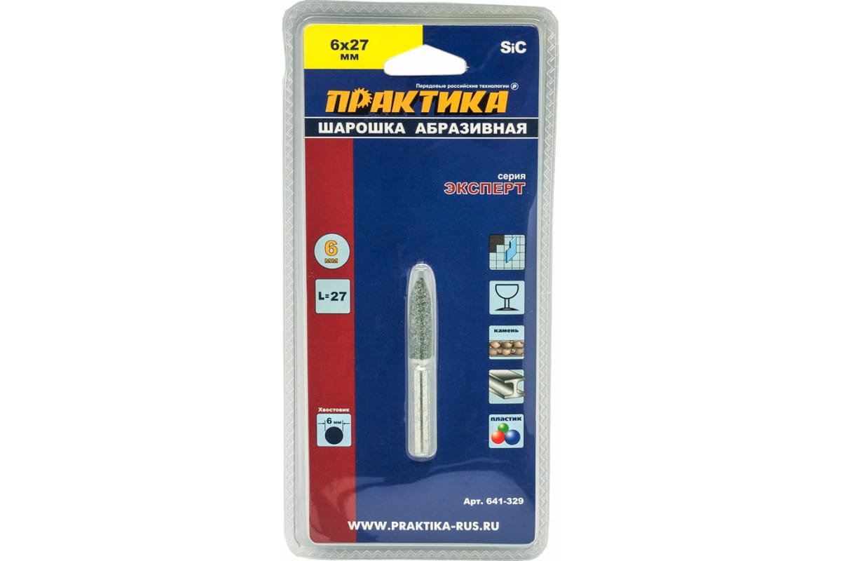 Шарошка абразивная ПРАКТИКА карбид кремния, цилиндрическая заостренная 6x27 мм, хвост 6 мм, блистер