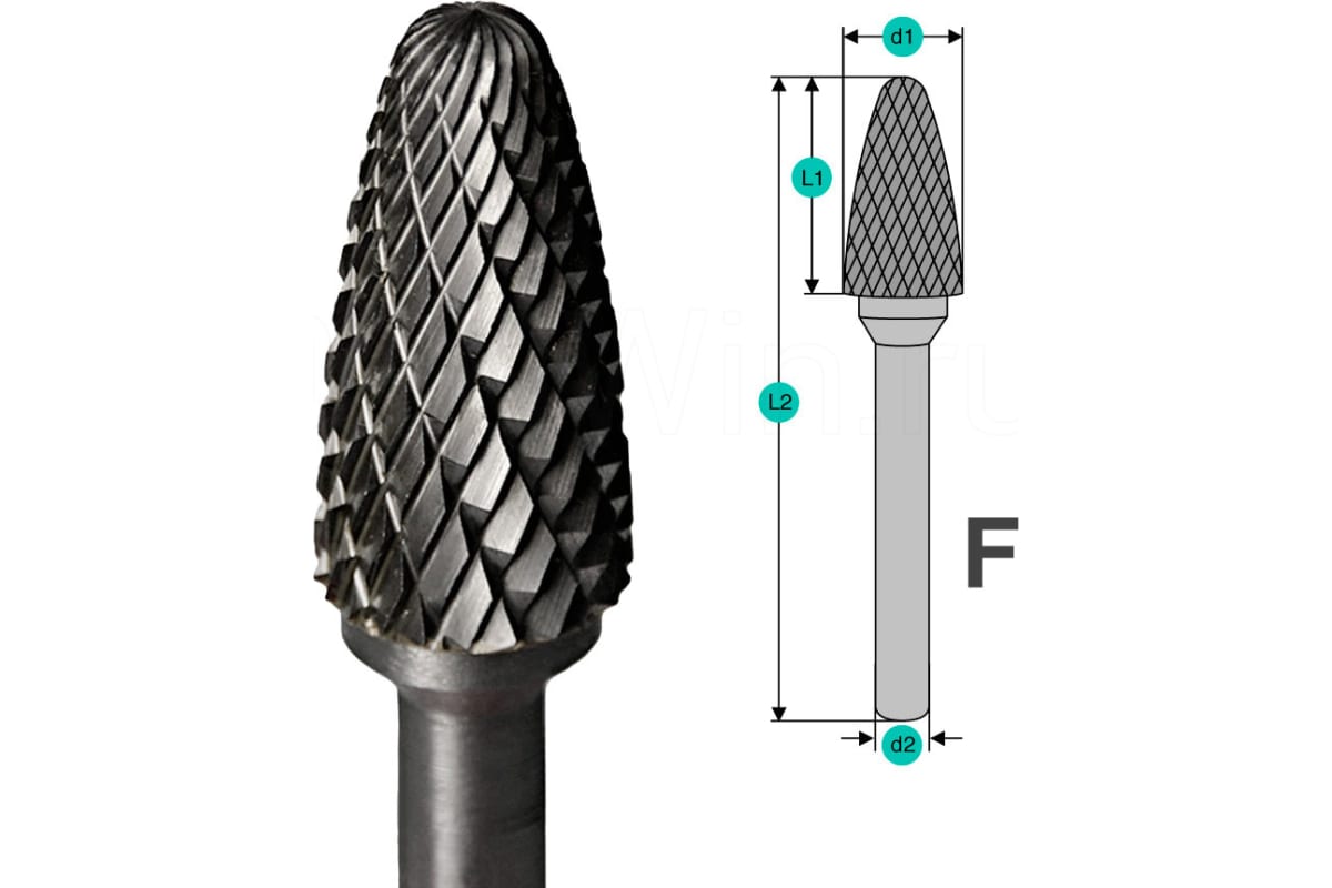 Твердосплавная бор-фреза тип F (12х25 мм; хв-к 6 мм) применяется на электрических и пневматических прямых шлифовальных машинках с цангой 6 мм.