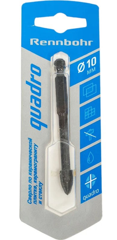 Сверло по керамике широко применяется для сверления отверстий в кафеле, керамической плитке и стекле. Сверло имеет шестигранный хвостовик для надежной фиксации в патроне. Твердосплавная режущая пластина из карбид-вольфрамового сплава обладает высокими характеристиками твердости и прочности, что обеспечивает повышенный срок службы, имеет специальный профиль и высокоточную заточку, что позволяет производить точное засверливание отверстий. Имеет четыре режущие кромки. Наилучший результат сверления достигается при низкой чистоте оборотов в зависимости от диаметра сверла (400-1000 об/мин). Обязательно использование охлаждение водой. Работу следует осуществлять в безударном режиме.