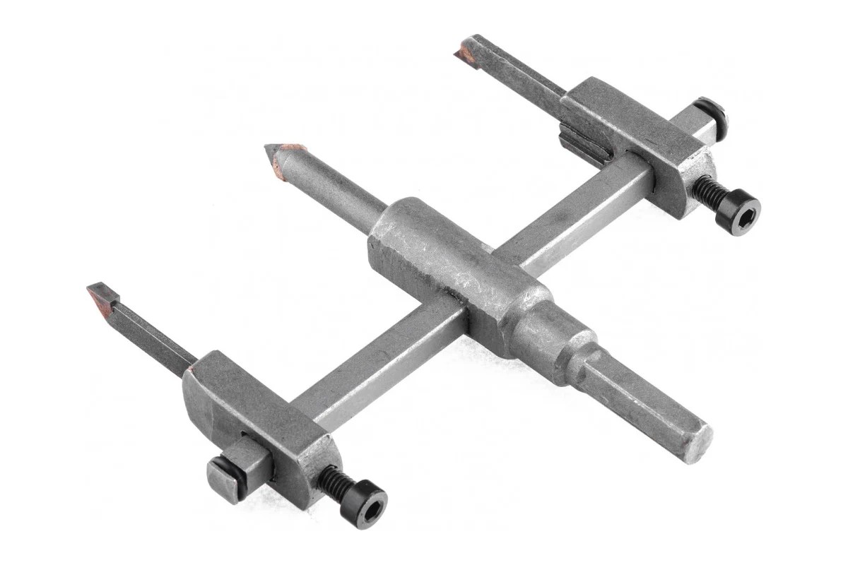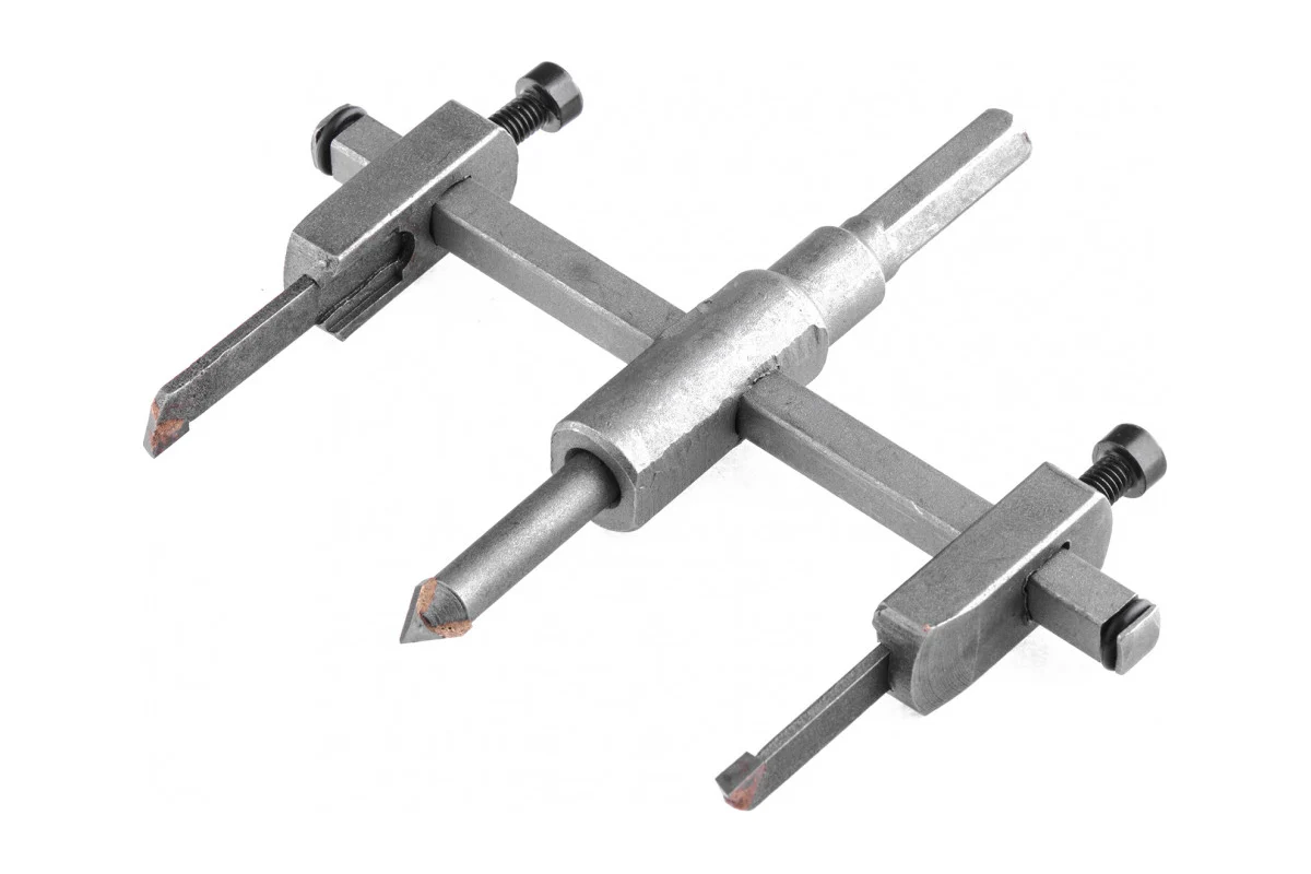 Сверло регулируемое Балеринка предназначено для сверления отверстий в стекле, керамической плитке толщиной от 30 до 130 мм, кирпиче и пластмассе. Конструкция оснастки позволяет быстро настроить диаметр реза в диапазоне от 30 до 130 мм. Режущие части сверла изготовлены из твердого сплава ВК8.