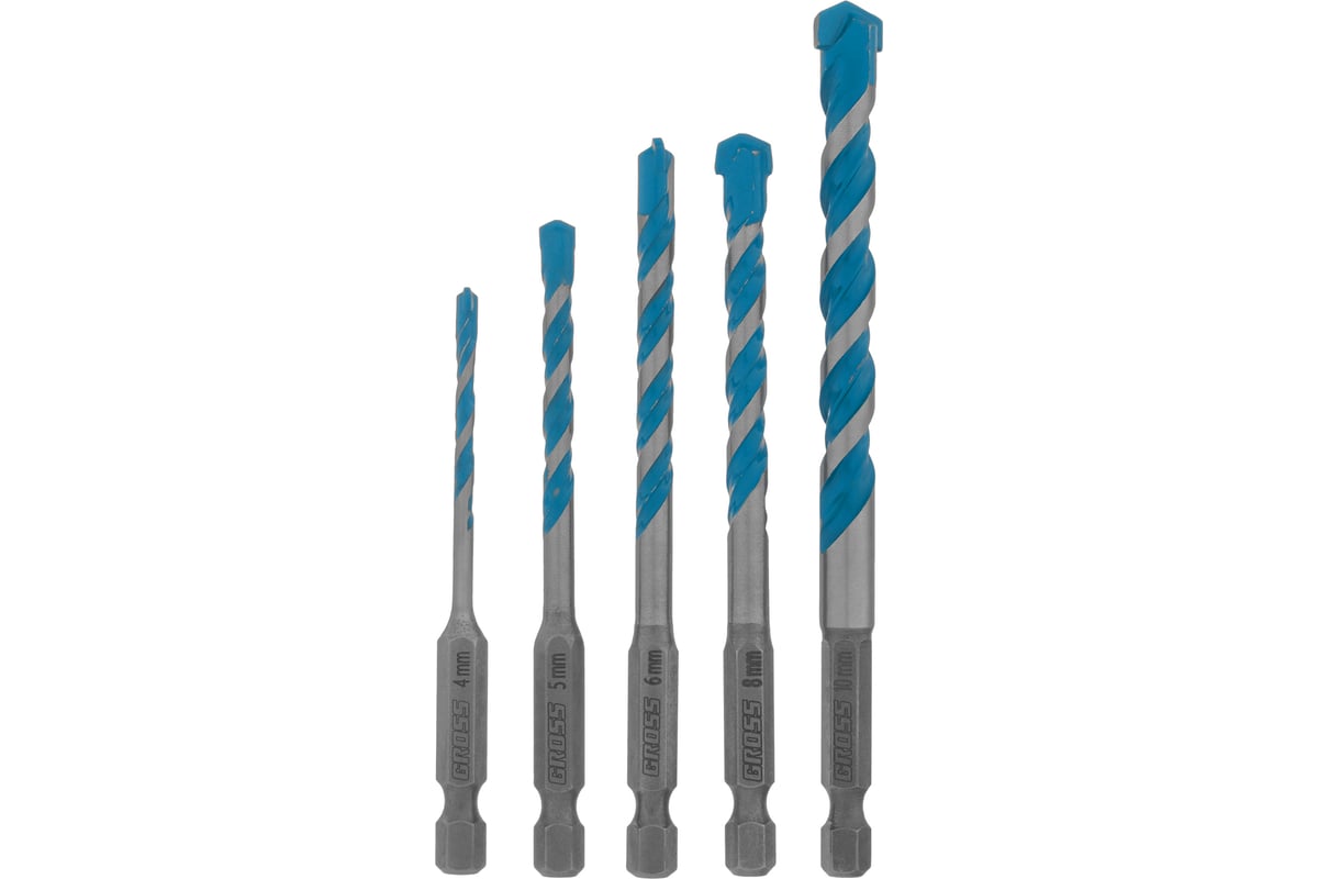 Набор сверл универсальных, Multipurpose PRO, 6-гр. хвостовик, 4-10мм, 5шт // Gross