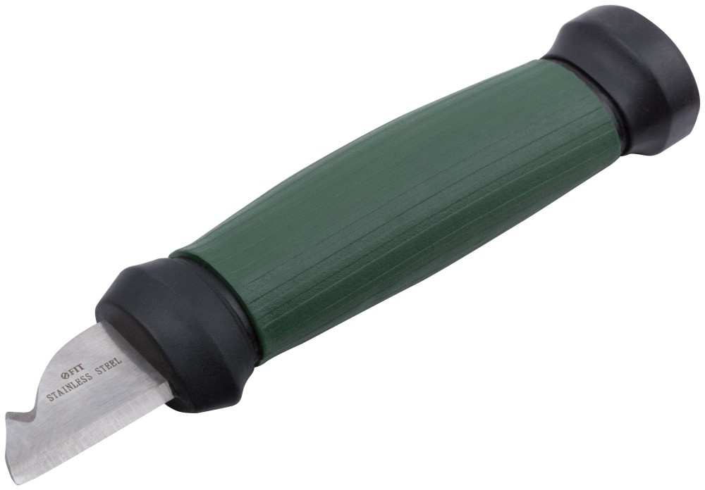 Нож электрика FIT нерж.сталь, прорез.ручка, 2-х сторонняя заточка, лезвие 33мм 10642 позволяет выполнять электромонтажные работы, связанные со снятием оболочки с проводов и кабелей. Рабочая часть имеет изогнутую форму и двустороннюю заточку. Для изготовления лезвия используется качественная нержавеющая сталь, а для рукоятки - пластик и резина. Для предотвращения получения травм в неиспользуемом состоянии на нож надевается пластиковый колпачок.