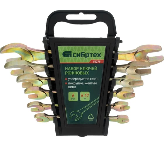 Набор ключей рожковых 6шт.(6-17мм) желтый цинк//Сибртех