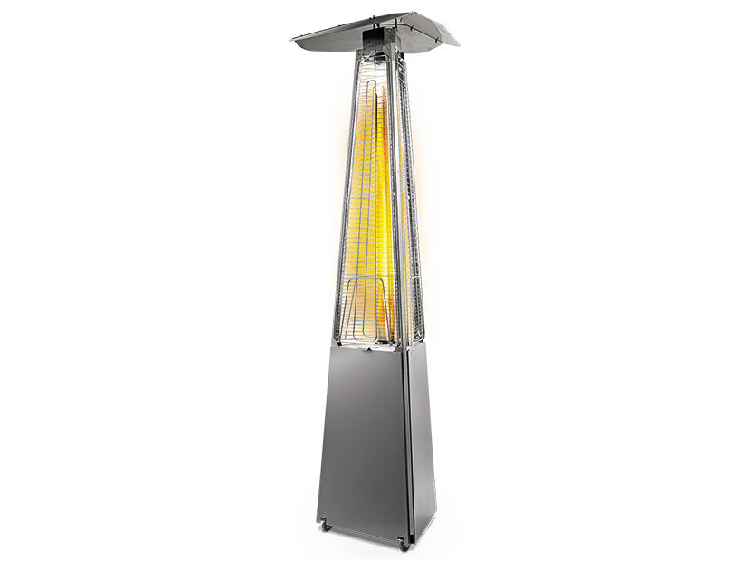 Уличный камин изготовлен из устойчивой к коррозии легированной нержавеющей стали и защищен от попадания атмосферных осадков сверху четырехгранным отражателем, площадь поверхности которого составляет 0,5 м². За безопасность эксплуатации отвечает многоуровневая система защиты. Датчик наклона отключает пламя при наклоне газового обогревателя более чем на 45°, термоэлектрический датчик и электромагнитный клапан сразу же останавливают подачу газа в критических ситуациях, таких как затухание пламени или утечка газа. За счёт встроенной колёсной базы обогреватель свободно и безопасно можно перемещать по любой поверхности.