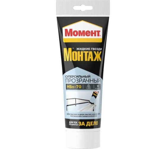 - Монтажный клей МОМЕНТ Монтаж отличается высокой первоначальной силой склеивания (70 кг/м2), влаго- и морозостойкостью. Продукт используется во время различных ремонтных работ.