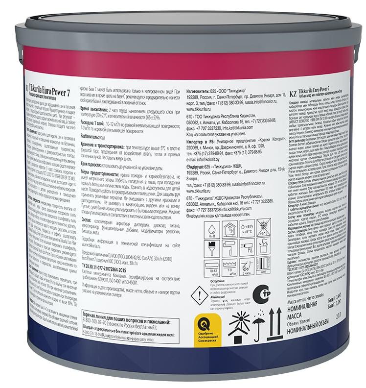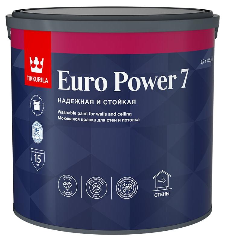 Краска Tikkurila Euro Power 7 латексная база С 2,7л. матовая, шт