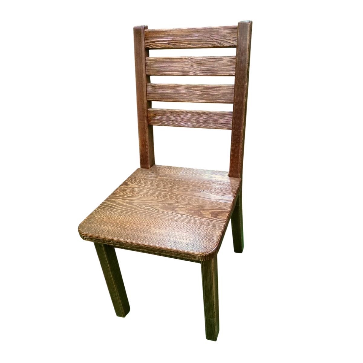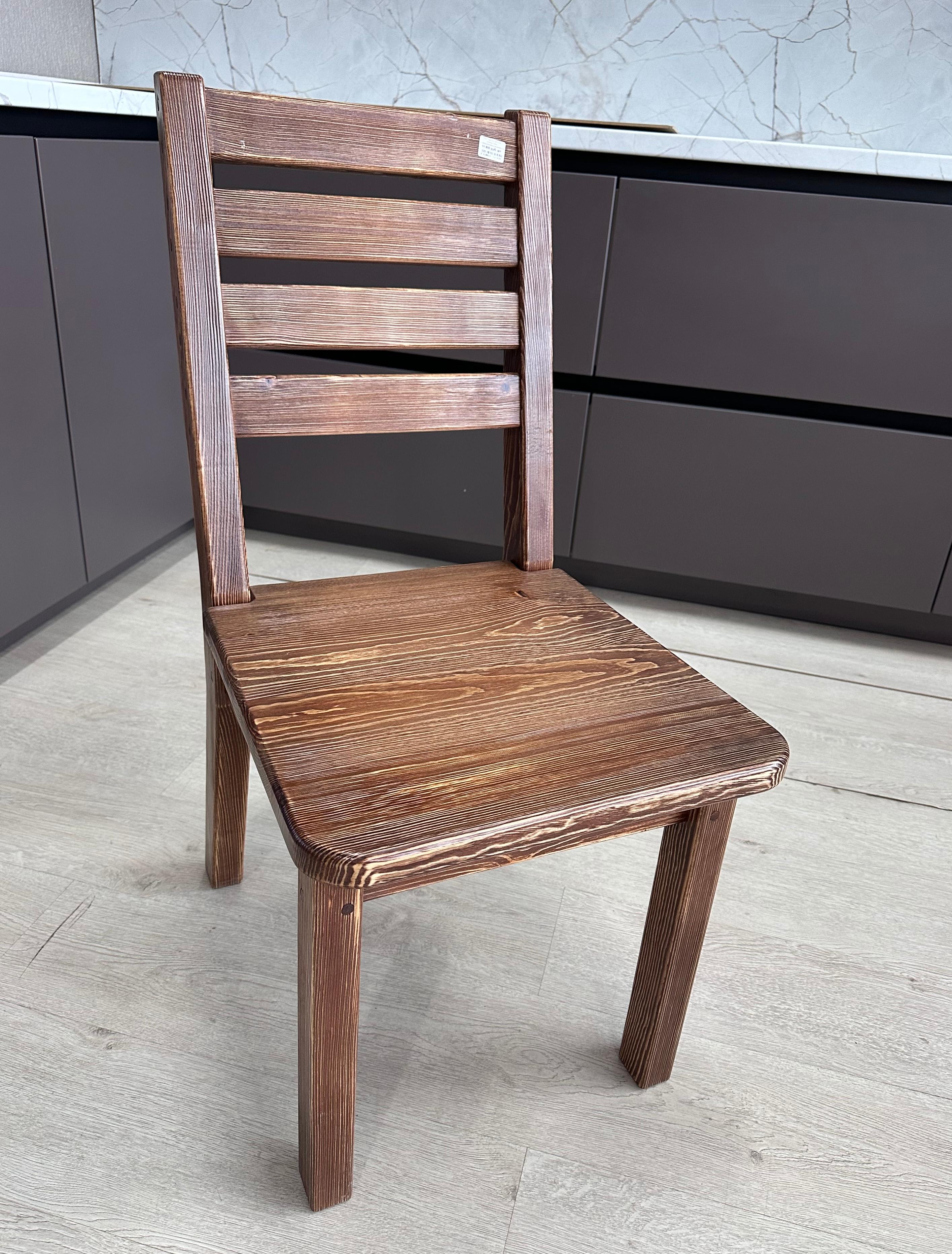 Стул выполнен в классическом дизайне с прямыми ножками и цельным сиденьем. Материал изготовления — высококачественная сосновая древесина, прошедшая тщательную обработку и защитную пропитку. Поверхность изделия имеет приятную текстуру благодаря специальной технологии брошировки, подчеркивающей натуральную структуру дерева.