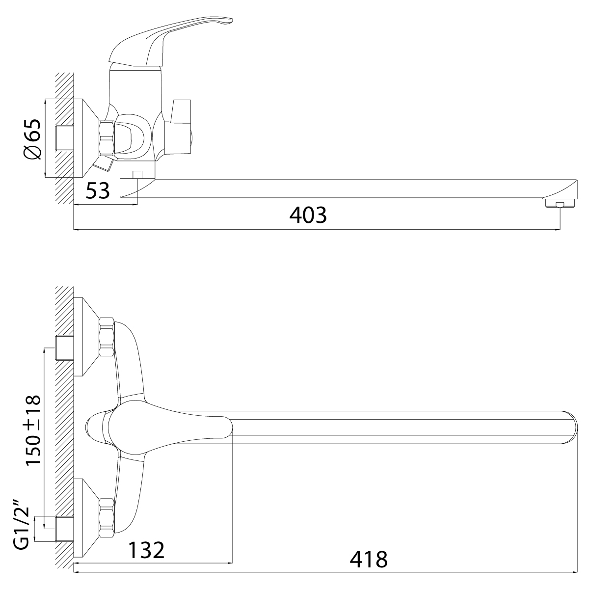- Механизм переключения потока воды (дивертор): флажковый дивертор