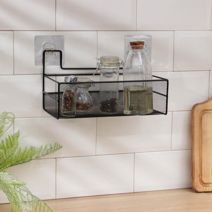 Полка на присосках 26х13,5х13,5см, цвет чёрный 6912532