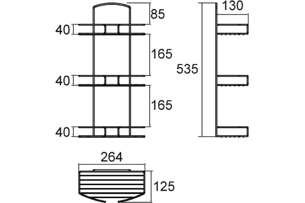 Трехъярусная прямая полка, стальная проволока Milardo 13 MI 013W030M44 позволяет держать под рукой все необходимые банные принадлежности. Решетчатая конструкция ярусов обеспечивает стекание воды с мочалок и бутылок, предотвращая образование плесени.