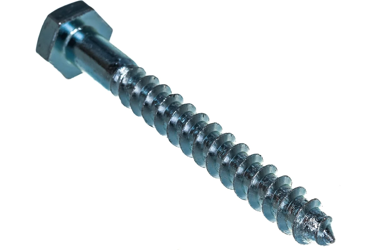 Шуруп для крепления лаг и реек или называемый в народе «глухарь», конструктивно представлен в виде металлического стержня с редкой резьбой под дерево. Головка у этих шурупов имеет шестигранную форму, под ключ или шестигранную биту. Резьба, в зависимости от типоразмера шурупа, располагается на все длину или немного не доходит до шляпки. Возможно использование с пластиковым дюбелем в плотные строительные основания.