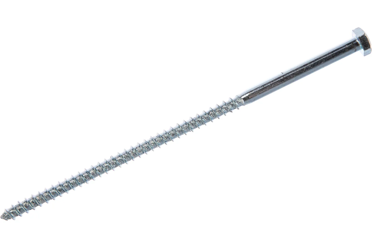 Шуруп для крепления лаг и реек или называемый в народе «глухарь», конструктивно представлен в виде металлического стержня с редкой резьбой под дерево. Головка у этих шурупов имеет шестигранную форму, под ключ или шестигранную биту. Резьба, в зависимости от типоразмера шурупа, располагается на все длину или немного не доходит до шляпки. Возможно использование с пластиковым дюбелем в плотные строительные основания.
