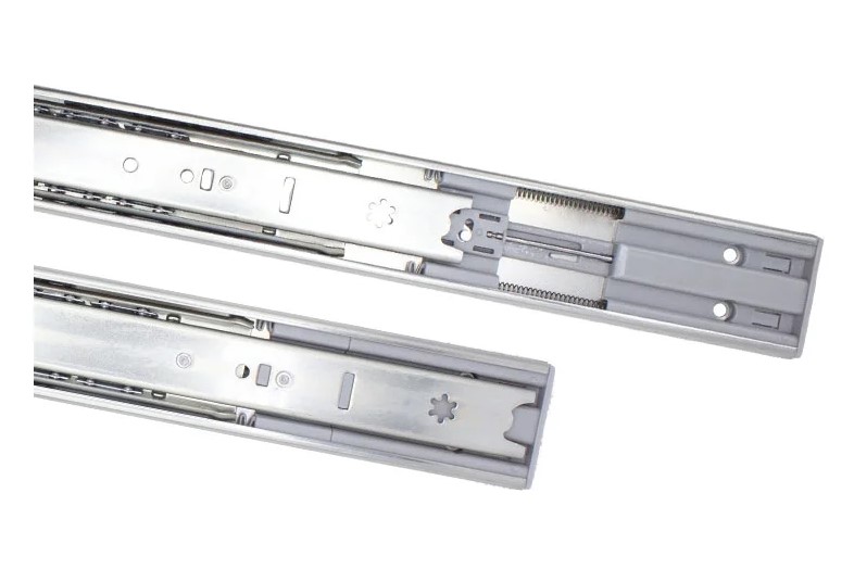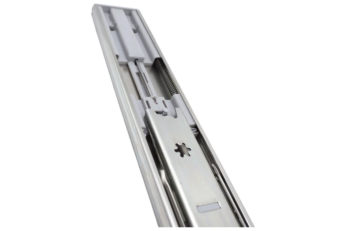 Шариковая направляющая полного выдвиженияMebaxс доводчиком — универсальный механизм для монтажа любых видов выкатных ящиков. Произведены на высокоточном оборудовании, благодаря чему обладают идеальной геометрией и плавным, бесшумным ходом.