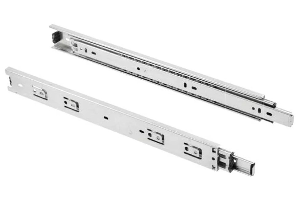 Направляющие шариковые полного выдвижения 45/450 мм, 50 кг - мебельные механизмы, используемые при сборке выкатных ящиков, а также применяемые в различной функциональной фурнитуре, такой как сегрегаторы, корзины для шкафов-купе и в прочих выдвижных системах в кухонной, гардеробной, офисной и специализированной мебели. Отличительная особенность шариковых направляющих данного типа (H45 PRO); повышенная нагрузка - 50 кг.