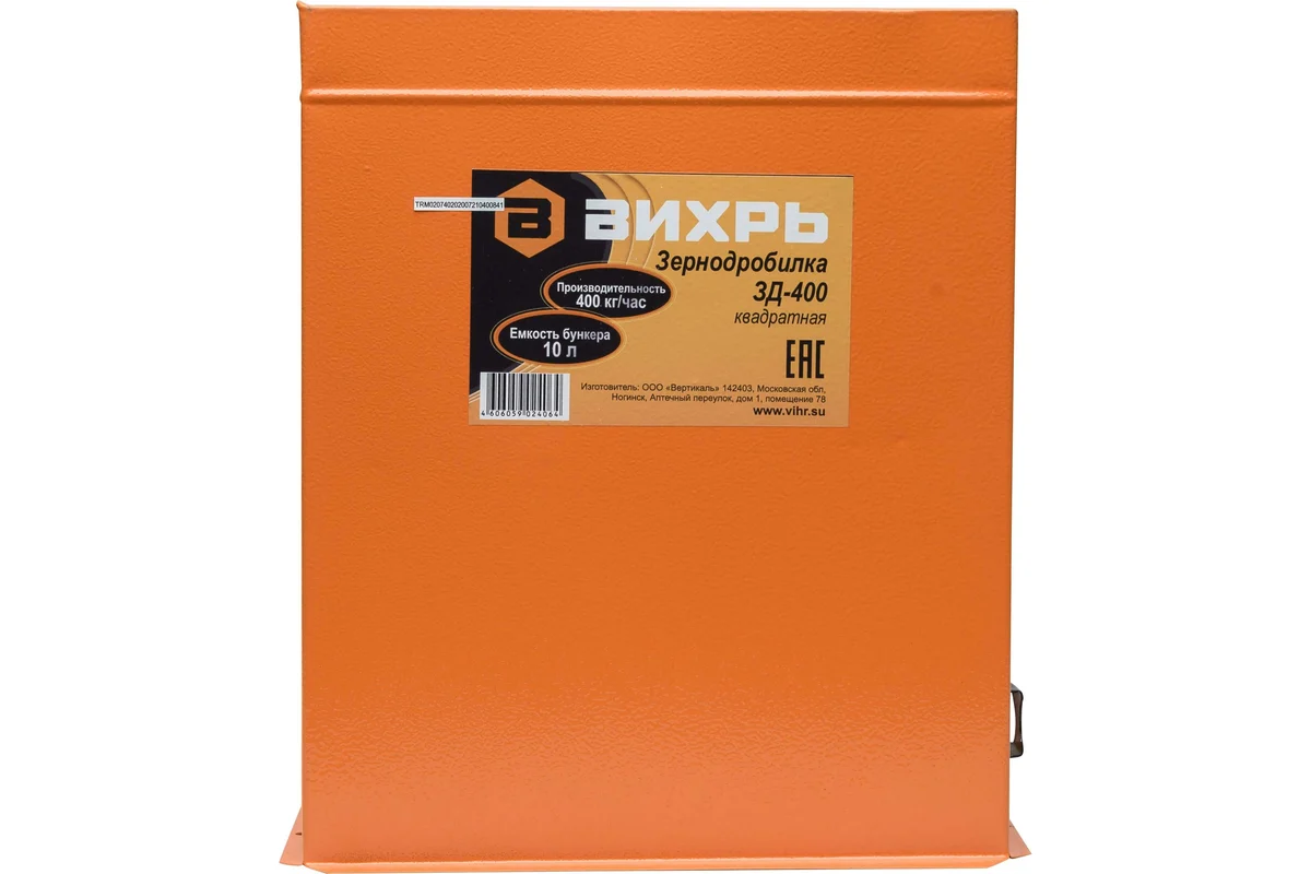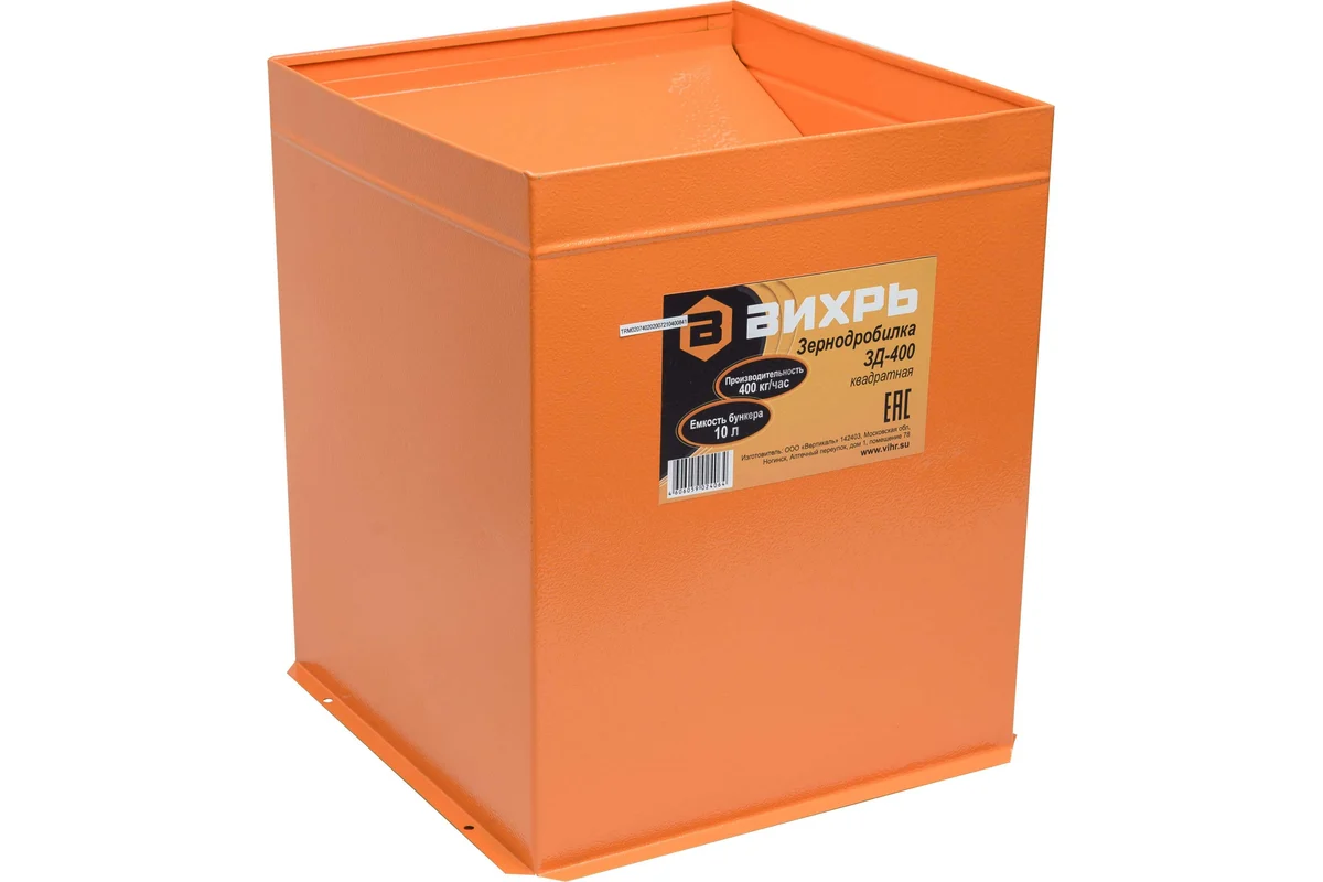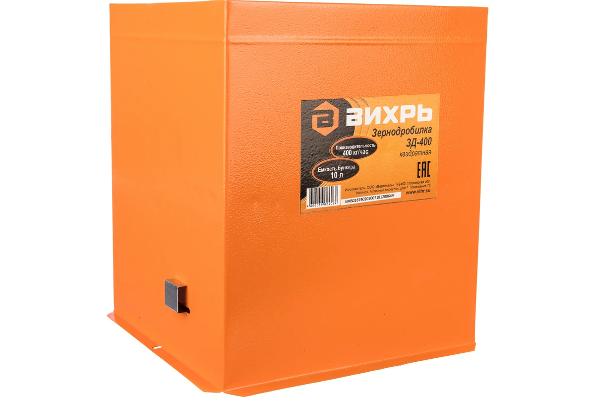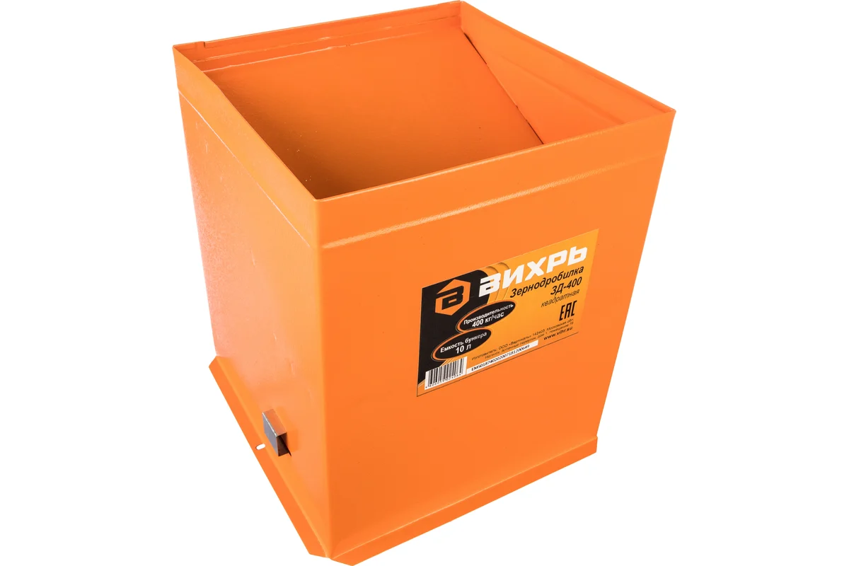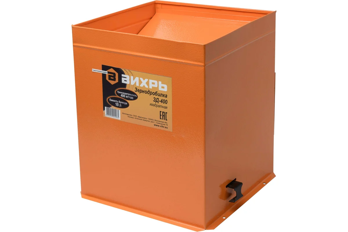 Измельчитель зерна ВИХРЬ ЗД-400 - модель зернодробилки повышенной производительности для личного подсобного хозяйства и фермерских хозяйств среднего размера. Применяется для дробления сухих сыпучих кормов для сельскохозяйственных животных: фуражного зерна, масличных культур, травяных гранул, комбикорма и т.д.