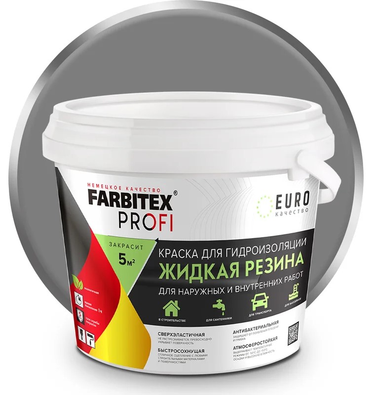 Краска FARBITEX PROFI акрил. для гидроиз. Жидкая резина серый 2.5кг.УЦЕНКА
