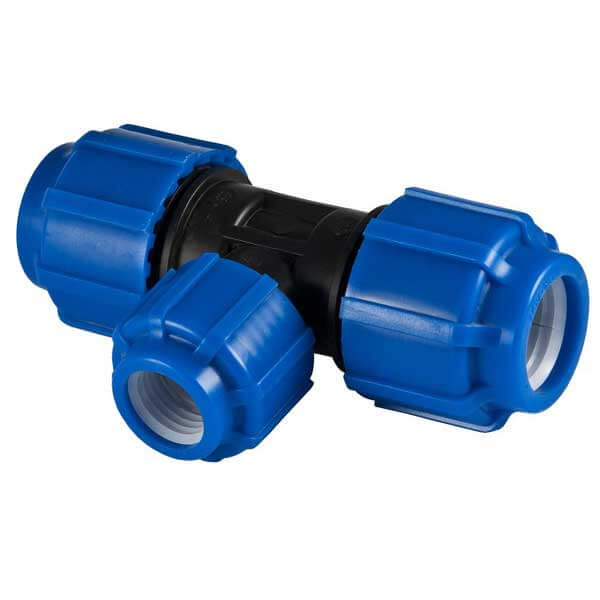 Тройник компрессионный переходной является деталью трубопровода для устройства разветвления полиэтиленовых ПНД труб разного диаметра.